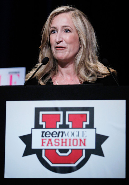 Vice President and Publisher of Teen Vogue magazine Sabine Feldmann speaks during Teen Vogue's Fashion University Day 2 at The Hudson Theatre 24 October 2010 in New York City. This last Saturday morning, a flock of high heels and sequined tunic-clad teenage girls began their training at the Teen Vogue's Fashion University, a weekend long immersion in the fashion world with seminars led by an impressive array of bloggers, designers and super models.